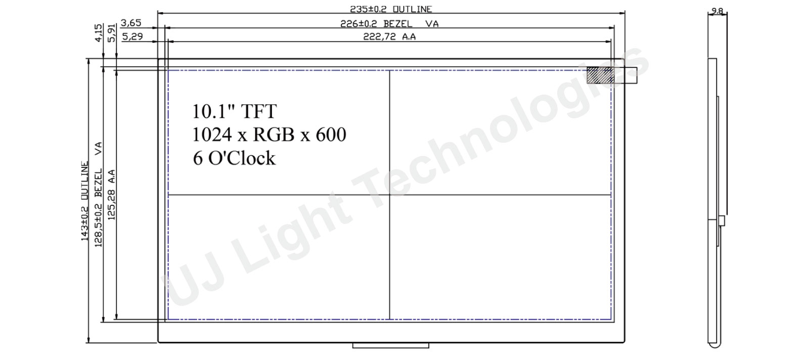 UTC101BE-GBN$ is a 10.1" TFT LCD with 1024*RGB*600 resolution.
